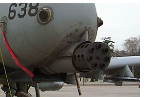 The empty shell casings are collected and recycled in a large tank in the belly of the plane, lest they fly out and get in to the fans of the twin jet engines. Wide open, these guns could expend their total load in just about 20 seconds, but short bursts are usually all that is needed to do the job. Sustained firing would melt the barrels.