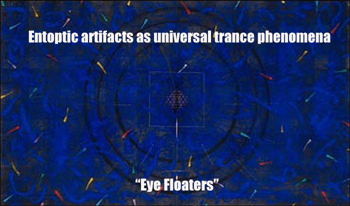 In ophthalmology, eye floaters are generally regarded as harmless vitreous opacities [right]. They are "entoptic phenomena", viz. optical phenomena which are caused by certain conditions of the human visual system. Entoptic phenomena, whose appearance can be manipulated by selectively induced changes of consciousness states, are objects of interest for both science -- and spiritually -- oriented researchers.