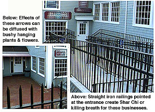 by Nancy Uon for viewzone Since my last article I've received many e-mails with questions about the practice of Feng Shui. "Do I need to follow a certain school of Feng Shui? I've heard that unless you practice 'pure' Feng Shui, whatever you do is a sham. Is this true? Do I have to learn about 'I Ching' to use Feng Shui?" Since the practice of Feng Shui has been around for many, many centuries, various schools have arisen. The most prominent among modern practitioners are the Compass School, which places more stress on metaphysical speculation, along with I Ching, Pa Kua and Lo Shu square, and the Form School, which places focus on dragon symbolism and land formation. The material offered in these articles is drawn from both schools. To practice Feng Shui on a personal, amateur level, one only needs to understand the basic principles and key concepts. I feel that any steps a person takes to make himself more aware of his relationship to his evironment, and vice versa, can only result in positive growth and benefits. The first key concept one needs to understand is Chi, the living energy that flows through all things in the physical world. Every physical thing, buildings, rocks, plants and land carry their own Chi qualities. Chi is the vital energy that connects and moves everything. Your business entrance is vital to your success This concept of Feng Shui deals with harnessing auspicious energy or "Cosmic breath" (Sheng Chi) and avoiding contact with inauspicious energy or "killing breath" (Shar Chi). Auspicious energy lines travel in a meandering or wandering pattern. Killing breath is created by straight lines, sharp pointed objects or structures and pathways that channel this negative energy. This effect comes into play indoors and out, at work and at home. Persons or places that are hit or attacked by this vicious killing breath, described as "poison arrows" can suffer ill fortune, health and other negative effects.