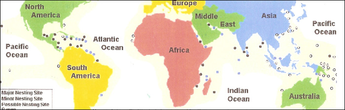 One day, I decided to examine the map of Meso-America in order to find out whether a Chetumala or Ketumala existed there. It did not take me long to find out that Chetumal is even now a safe port in what is now Belize, Central America. At first, I was satisfied that I had found the Chetumala depicted in the picture of Mt. Meru. But the skeptics let me know that this Chetumala might be just a coincidence. After looking at all the pictures of Mt. Meru I could find, I discovered that next to Chetumal was a body of water called Kashyapa Sea. One of the meanings of Kashyapa is "sea turtle; tortoise." I then investigated to find out whether there are significant turtle populations in the Caribbean area and off the coast of South America. I found out that more sea turtles of different species inhabit Meso-America and Eastern South America than any other place in the world.