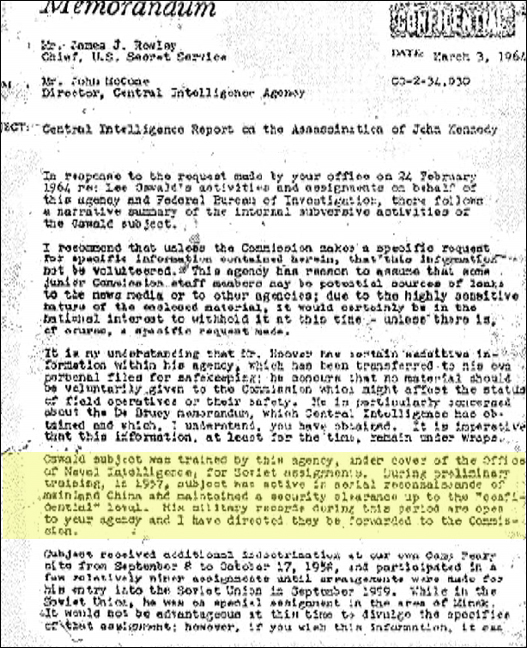 In the following memorandum from the Director of the CIA, Lee Harvey Oswald is clearly identified as a CIA agent.