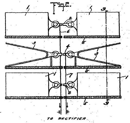conductor 21 because of its connection with electrode 13 of the rectifier