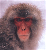 The Japanese monkey, Macaca Fuscata [right], lives on the island of Koshima and has been the target of biologists social scientists for decades. To keep them viable, they are routinely given sweet potatoes which are dropped on the beach. The monkeys enjoyed the potatoes but obviously disliked the sand that clung to them.