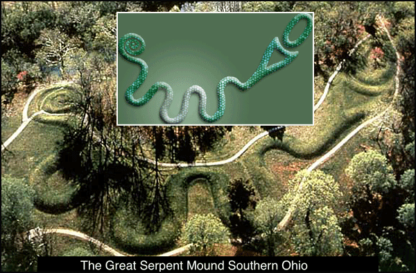 Native Americans use the snake to represent their path or boundaries -- the number of coils refer to the number of times, the right angle, the end of the path. In Southern Ohio, The Great Serpent Mound, is thought to represent a serpent eating an egg. My thoughts would be that it represents the six times the Creator said he would return and re-populate the Earth. After that, we are on our own.