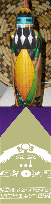 There are many similarities between the Hopi and the Creators of the Pyramid Complex; both have the same type of religion (masked deities, sun worship, feathers, etc), both had bows and arrows, the same type of jewelry, turquoise, fetiches, hair styles, weavings, hieroglyphs, boomerangs, pottery, grinding stones, corn, murals, farming techniques, dolls of their deities, and a great respect for the balance of the Earth and the Creator.